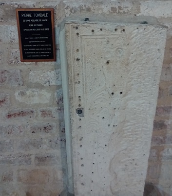 Finally, there’s an old tombstone. According to the plaque, it belongs to Adelaide of Savoy, queen of France, wife of Louis VI. She founded the Benedictine Abbey of Montmartre in 1133, died in the abbey in 1154, and was buried in the church of St. Peter, which Pope Eugene III had consecrated in 1147.